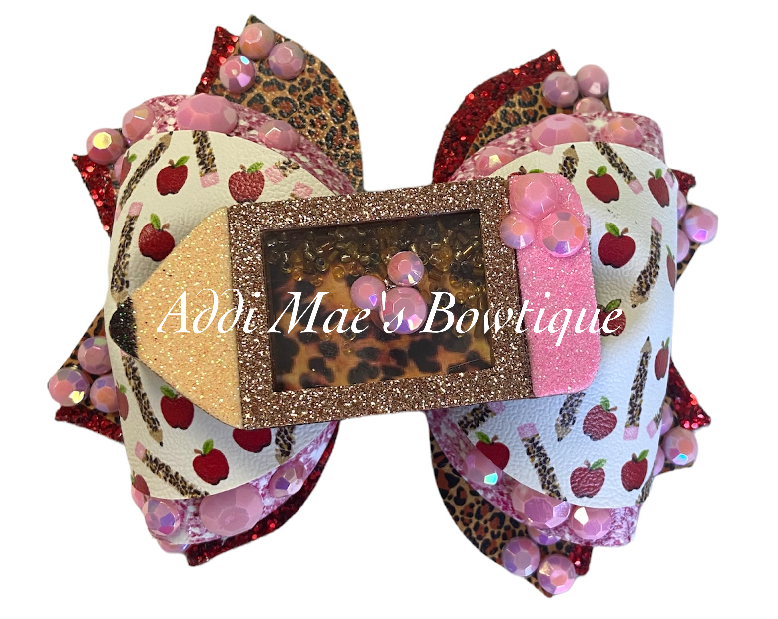 Apples and Leopard Pencils Back To School Shaker Bow