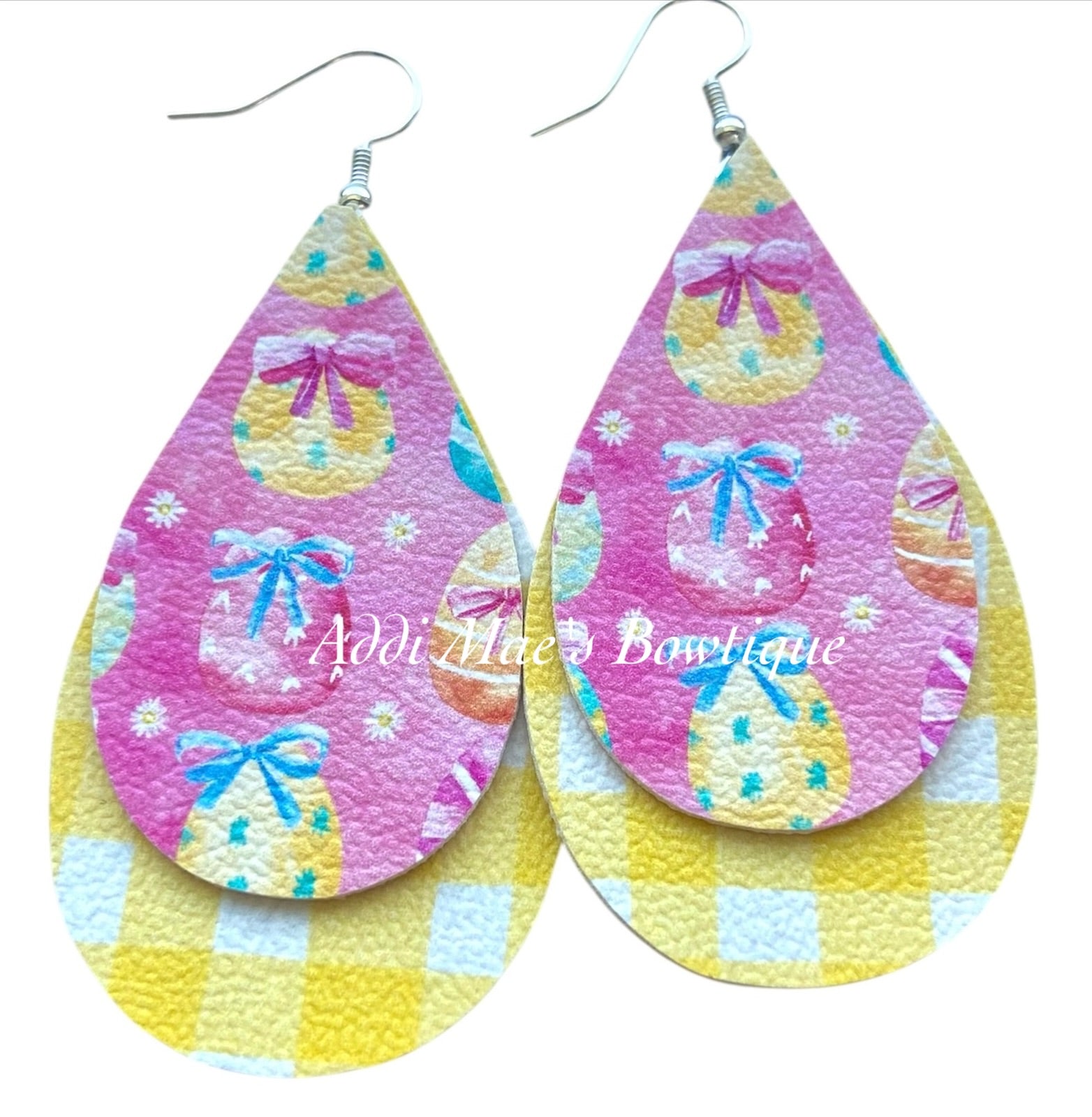 Bright Easter Eggs Gingham Stacked Tear Drop Earrings