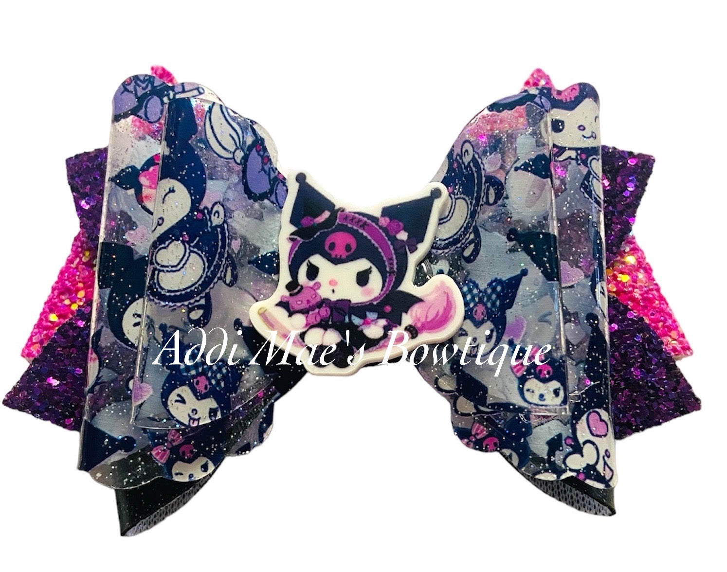 This listing is for one 4” faux leather bow with cute kitty center and felt bat.
