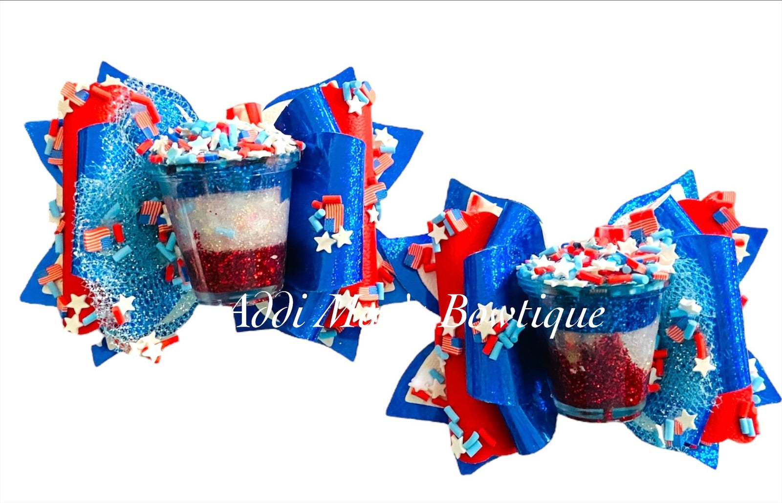 This bow can be attached to your choice of 3” alligator clip with teeth or 3” French barrette.
