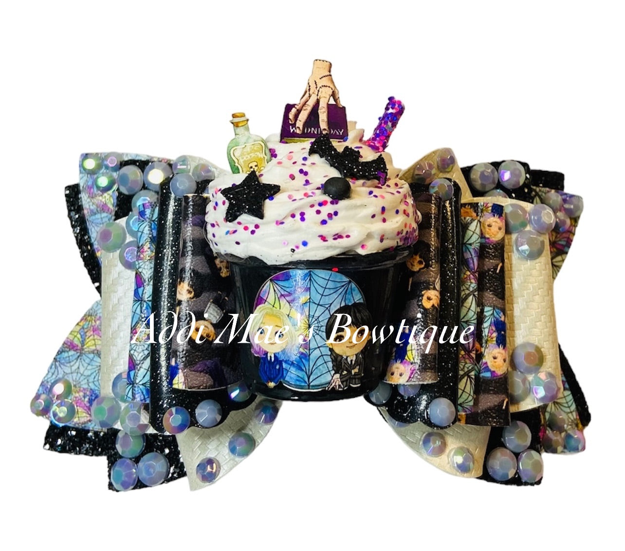 This bow can be attached to a 3” alligator clip with teeth or a 3” French Barrette.