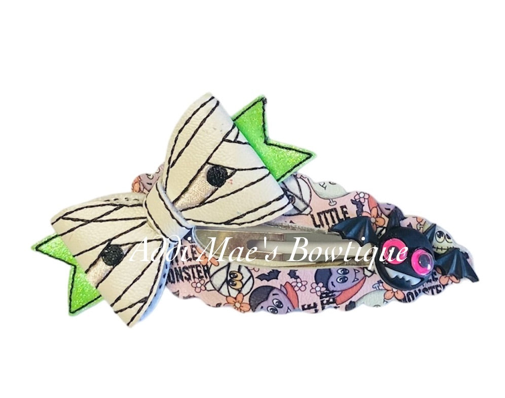 This listing is for one XL snap clip. It has an embroidered mummy bow.
