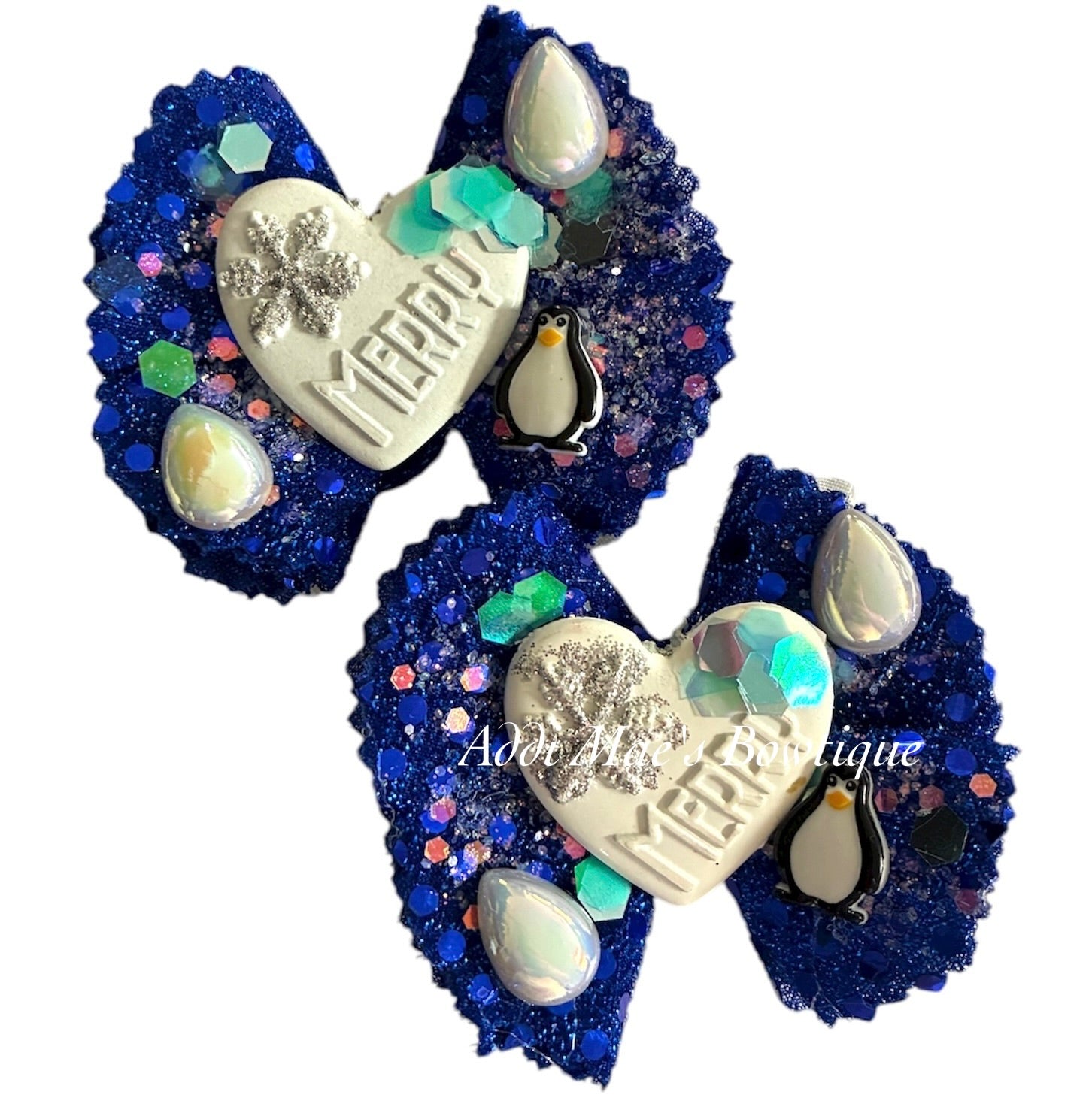 Merry Penguin Cotton Frayed Fabric Flower Piggy Set