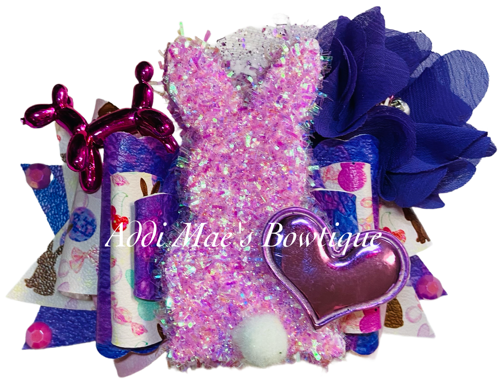 This listing is for one 4.5” faux leather bow with a Easter” grass” bunny.